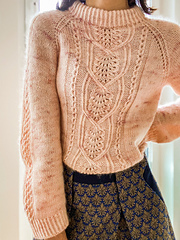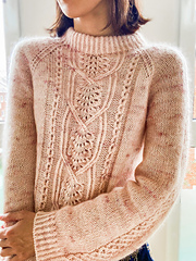 This is a feminine sweater with lace and cable details, which will charm you whilst knitting and wearing.