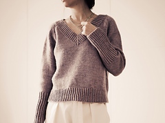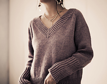 Basic V is a simple raglan pullover with a wide neckline. It is designed with a relaxed fit. It is worked seamlessly from the top down and you can easily adjust the length of both the body and the sleeves. The neckband is worked by picking up stitches along the neckline. It shares the same neckline and raglan shaping with my design [Devotion][2]. No short rows are used in the pattern.