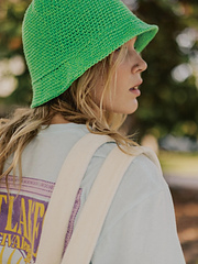 Work hat from top down in Tykk Line. Beg to work flat at top, then inc and work sides, end with hat brim.