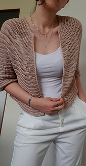 400,450,500,550,600 gr of worsted weight yarn (1 ball 50 gr/100m). You can use baby merino wool like Peo 30 from Silke, alternatively Cable 4 cotton by Silke (1 ball 100 gr/200 m). The amount of yarn could vary if you decide to make it longer. The pattern indicates the estimated quantity for a cardigan with ¾ sleeves.