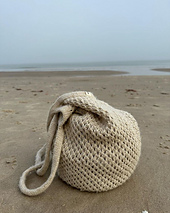 The beige Breeze Bag is knitted in two strands of Trio 2 by Isager in the color Linen.