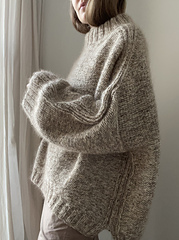 The Grey sweater in the pictures is made in Aran tweed col. grey and silk mohair col. 47, and the Sand sweater is made in Aran tweed col. sand and silk mohair col. 7s