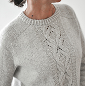 LENU is worked seamlessly from the top down. The neck is shaped with short rows and then you work in the round and increase for the shoulders and then for the body and sleeves down to sleeve separation. The sleeve stitches are then placed on hold, underarm sts are cast on, and you continue to work the body to the ribbing. After the body is completed, the sleeve sts are picked up again to work the sleeves top down in the round. The neck finishing is worked last.