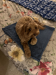1 (1) [2] 60”/152 cm barber cord, or 60”/152 cm needles in gauge or smaller, for transferring stitches to check progress. Tapestry Needle.