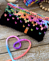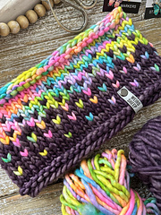 The pattern uses the Fair Isle (stranded) colourwork technique. When knitting colourwork, try not to knit too tightly. Stretching your work as you go helps with this. Steam blocking your finished headband also helps to relax the stitches.