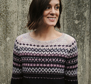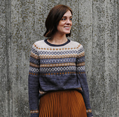 This garment is worked top-down, mostly in the round, with a modified raglan construction. The back of neck and sleeve stitches are cast on first and worked flat whilst beginning the modified raglan shaping and front of neck shaping. Once joined in the round, stranded colourwork is worked whilst the raglan shaping continues. Please note that, although four colours in total are used in the colourwork, only two colours are used on any given round.