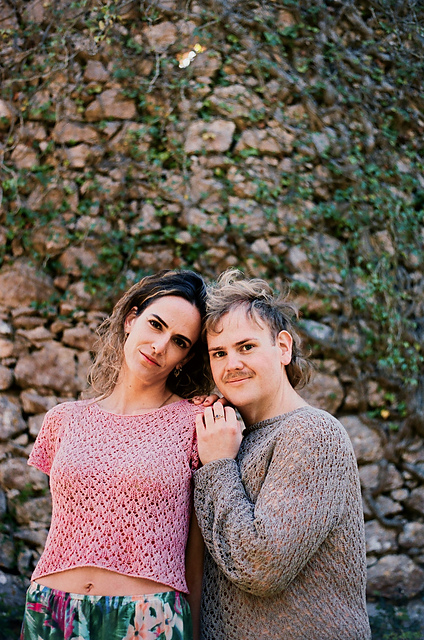 Samples knit in the colorways Rye, and Peony.