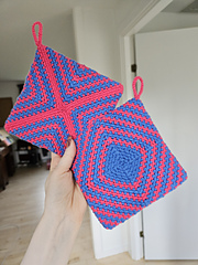 SIZE: This pot holder measures 7.75” wide x 7.75” long when laid flat. However, instructions are provided to customize the size of your pot holder.