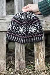 Alison’s hat is a distinctive design that incorporates traditional elements together with a flower motif. She chose the name Buggiflooer – a Shetland name for Sea Campion – which grows in abundance near her home by the sea.
