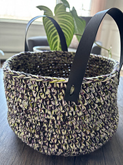 Any yarns from fingering to bulky/chunky weight, about 1 1/4 pound (550 g) of mixed yarn scraps for a small basket or 2 1/4 pound (1 kg) for a large basket