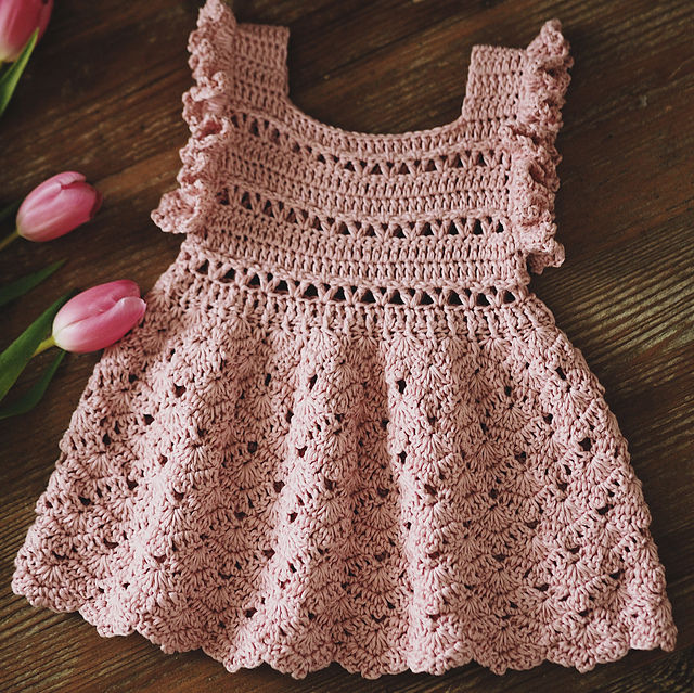 Tuberose dress is worked from the waist up. When the top part is completed you work the skirt. It is almost seamless, there are just small seams to make to join the straps.