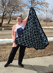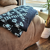 *I almost finished 5 x 5 squares before running out of Tundra-colored yarn. Then I used a full ball of Obsidian for the border.*