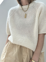 **LANE_LOOP_TEE** is a top designed with a loose T-shirt silhouette with raglan sleeves, rib panels and a pretty decrease pattern on the front section.