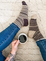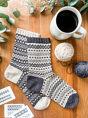 Special techniques include stranded colorwork in the round, short row heel using wrap & turn method, toe shaping, and grafting.