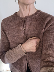 It is worked seamlessly from the top down. First some short rows are worked to shape the neckline. Raglan increases are then worked to the final yoke depth, where sleeve stitches are put on hold. From this point the body is worked back and forth down to the ribbing. The body could be either worked straight or with a light A-line shaping. Then the button bands are worked. Last the sleeve stitches are picked up again to work the sleeves in rounds top down to the cuffs.