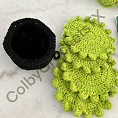 This is crochet patten in US terms to make a set of 4 coasters that, when stored, look like bubbles coming from the top of a cauldron. The pattern calls for cotton, but other worsted-weight yarns may be used. It works up very quickly and would be a great item to have on hand for fall markets.
