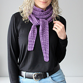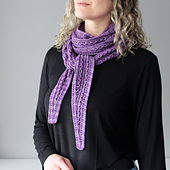 Eyelet lines and twisted ribbing decorate this beautiful “1-skein wonder”. Choose your favourite skein of fingering weight yarn and turn it into a scarf that adds a chic little touch to any outfit but is still casual enough for daily wear.