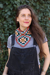 This trendy spring accessory works overtime as a kerchief that works for the head or the neck. Worked up in classic granny squares, it will give a pop of color to any outfit. Work up several with the same colors in different orders for you and all your pals.