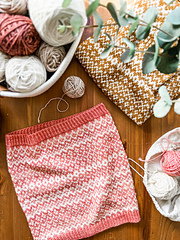 Sample uses Green Letter Day Merino 4-ply DK base, 100% superwash merino, 100g, 250 yards [231 m] Colors: White Oleander (white), All the Way Mae (pink), Odette (light pink)