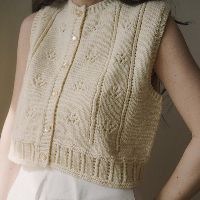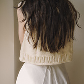 The top is worked from the bottom up. Front and back are joined at the shoulders. Beautifully finished with a decorative edge.