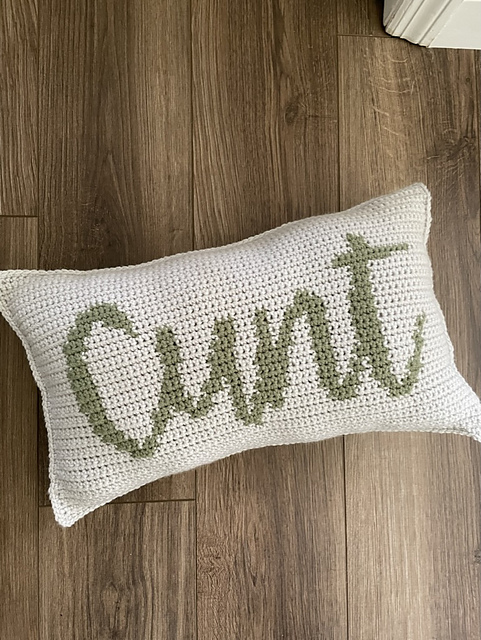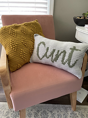 This Cunt Crochet Pillow Pattern is a fun, quick project, using 1 kind of stitches and 2 colors to create a conversation piece in your home. Make it in any color to match your décor!