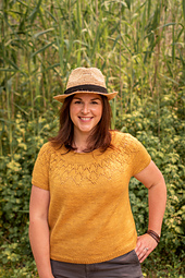 The Pampas Tee is my go-to elevated basic summer top. An airy lace yoke and wide I-Cord trimmed neckline keep this tee breathable. Top down construction is easily modified to create the perfect look just for you.
