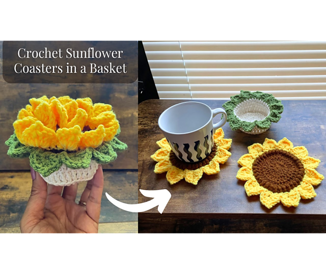 This EASY pattern will teach you how to create stunning Crochet Sunflower Coasters that transform into a charming basket of flowers. The step-by-step instructions make it easy for both beginners and experienced crocheters to follow along. Add sophistication to your table setting and learn a new crochet skill with this tutorial.