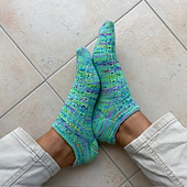 Für sommerlichere Temperaturen habe ich mein beliebtes Hazelmuster diesmal mit einer Fersenlasche, vom Bündchen bis zur Spitze gestrickt und mit der bewährten Lanesocks - Ferse versehen.