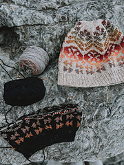 The sport weight version (black sample) uses [Rosa Pomar Vovó][3] for the main color and [Spincycle Dyed in the Wool][4] for the colorwork.