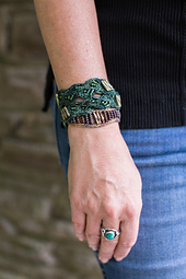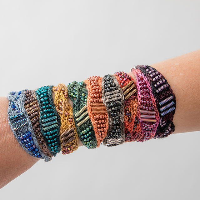 Chillow Cuff is knit with silky smooth hand-dyed Valdani Perle Cotton. Twisted Bugle and seed beads are pre-strung onto the yarn and slipped as you knit. Chillow Cuff coordinates with [Chillow Collar][1], May '23's Lola's Choice Kit!
