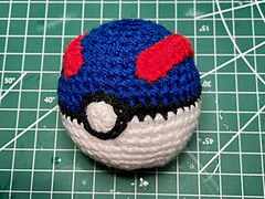 Based off the body pattern for my previous pattern for katamaris, this pattern works up to a close to life size Poké Ball (7cm in diameter) using DK yarn. Includes instructions for Premier, Great, Ultra and Master Balls.