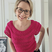 **Construction:** This pattern is crocheted in one piece from the top-down. You will begin with the neckline and work a few increase rounds until reaching your unique yoke depth. Then you will work partial rows across the back edge to create short-rows that will help raise the back-neck for a better fitting garment. After the short-rows, you will join your work once again to work in the round while skipping over a specified number of stitches to create two armholes. The body is worked next, and the short sleeves are worked last.