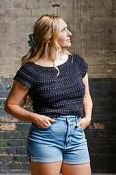 This lightweight, versatile tee is designed to become a year-round closet staple. Crocheted seamlessly from the top-down all in one piece, the Sylvan Yoke is a clean, polished design with several short-rows cleverly placed at the back-neck for a comfortable fit. The eye-catching texture is created using stripes of puff stitches, giving the illusion of horizontal braids rippling from the yoke.