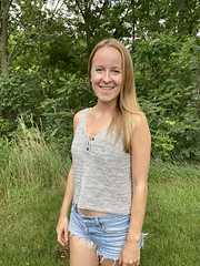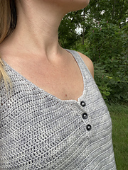 This tank top is worked from the top-down seamlessly meaning it is very easy to adjust the length to your wants!