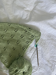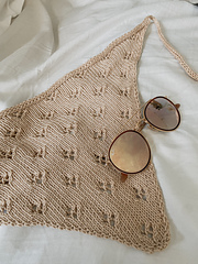 The **Romanticist’s Bandana** is a quick stash busting project for anyone looking to add a little whimsy to their accessory wardrobe. It’s constructed by casting on the point of the bandana and increasing on either side while simultaneously working a delicate diamond repeat until a desired width is established. It can easily be modified to different sizes by either omitting or adding repeats. An i-cord edge is then added on to create the ties.