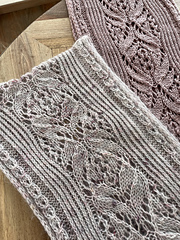 Monarque is a shawl/scarf that is knit using 2 strands held together: Fingering + Mohair, 400 meters of each.