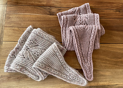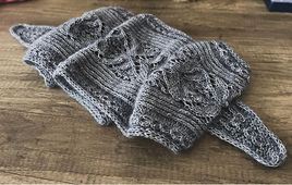 The sample model is knitted with: One skein of Lyly in its Bling quality, the color 'September-Paris', and 2 balls of Knitting For Olive Mohair in the color 'Pearl grey'.