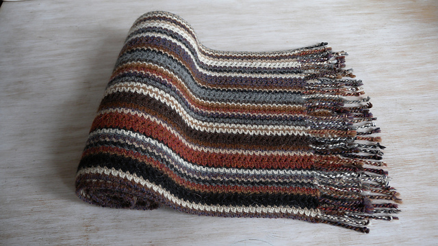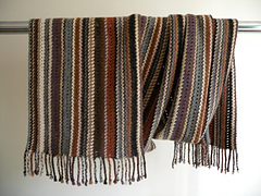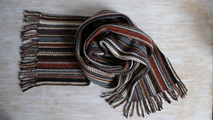 This pattern is created for autumn/winter scarf to use with alpaca and wool yarns, a bit hairy textured and loose-twisted.