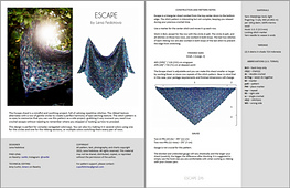 The Escape shawl is adjustable and you can make this shawl smaller or larger by working fewer or more row repeats of the stitch pattern. Bear in mind that in this case, your yardage requirements and finished dimensions will change.
