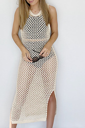 Perfect for styling over your favourite swimwear this crochet dress adds coverage and flair to any pool or lake Summer outfit! This pullover beach cover up has a classy look with the high neckline, tank straps, and long length but also offers a touch sexy with the peekaboo mesh body and optional side slits. It's easy to work up (using simple stitches) and can be made in 5 different sizes from XXS to 5XL.