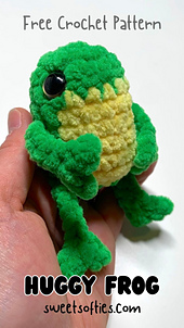 The Huggy Frog pattern is beginner friendly, quick, and no-sew! It works up fast to create a pocket sized tree frog. This little critter makes a cute and portable buddy for frog lovers. It also comes out to be a great size for a keychain!