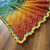 The rainbow stripes are accented by contrasting granny cluster rows and a custom sunshine border finishes off this cheerful blanket.