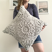 This pattern is written for pillow size 20x20" square in super chunky weight yarn. I used Lion Brand Re-Spun Thick & Quick for my grey pillow and a size 9.00mm hook. -Any super chunky weight yarn will work, as long as gauge is met.