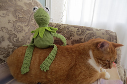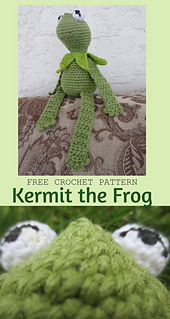 This is the first pattern that I've written! The finished product is 7 inches tall if Kermit is sitting. He's a foot long if he's "standing".
