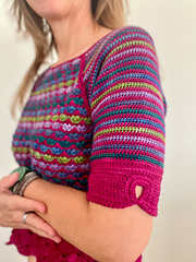 **This size-inclusive top-down raglan crochet crop sweater pattern packed with textural elements, a layered lace hemline and potential for colour play.**