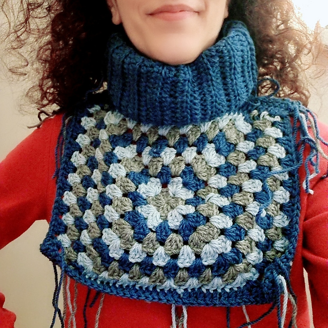 This neck warmer fits an adult, but you can make any other kids sizes using smaller granny squares