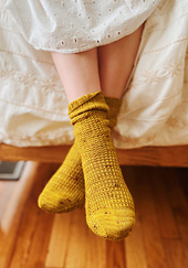 The seasons socks are all about transition ~ that in between, uneven time as weather patterns shift and slide. This soft little sock is pure comfort: texture and squish and a little slouch, the kind of socks you slide on before getting out of bed. Something to remind you that the chill is on the way!
