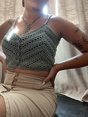 A size-inclusive, intermediate-level crochet tank top pattern. The Sweet Summer Tank is slightly cropped (length can be adjusted) and is made from 3 separate panels sewn together.