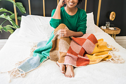 When one color won’t do, use all of them! The Checked Out Blanket makes the most of your perfectly hand-picked palette by letting each color shine. Build your blanket by connecting join-as-you-go Tunisian crochet panels in the iconic honeycomb stitch pattern. Each added panel gets you closer to cozy bliss. Add playful twisted tassels in a contrasting color for the perfect finish.