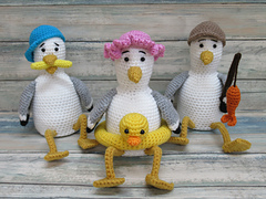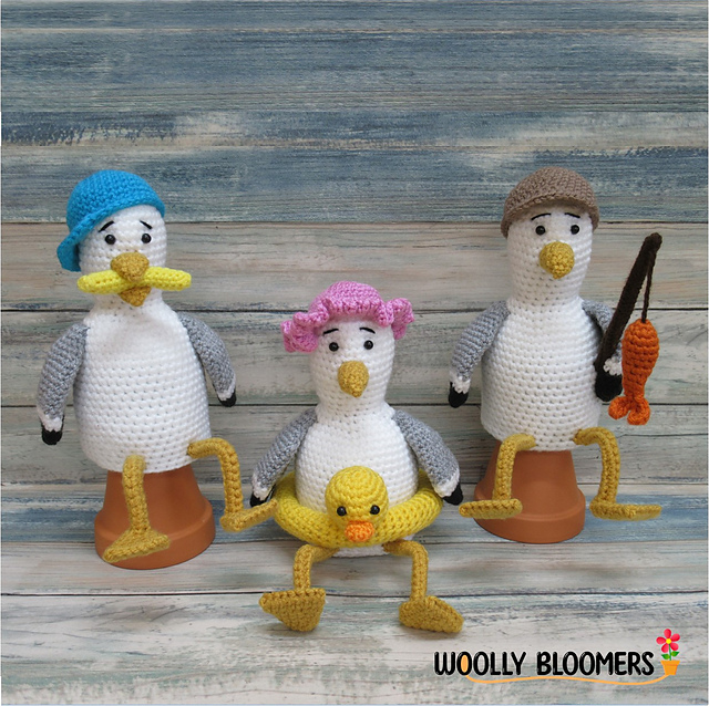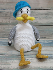 Extra FREE patterns included for a Bag to hold the Seagull's stolen chips and a Camera. Also included are instructions for turning the Seagull into a Duck, Parrot and Pigeon.